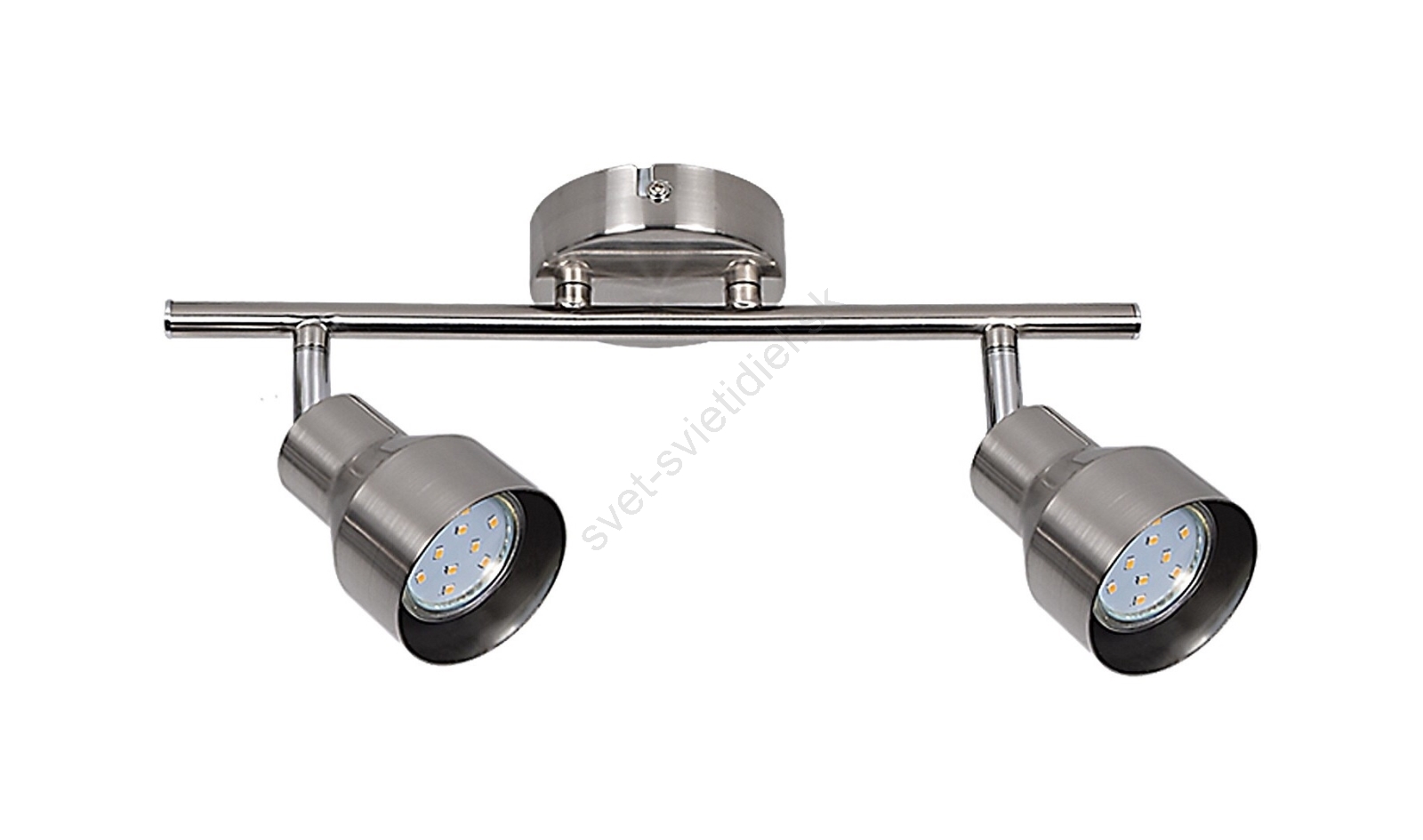 Moderné dvojité bodové svietidlo Blake môže byť skvelou voľbou do rôznych miestností vášho bytu: môžete ho namontovať v obývačke, spálni, jedálni alebo aj v kuchyni. Toto celokovové svietidlo zo saténového chrómu sa upevňuje na stenu pomocou okrúhleho dekoratívneho podstavca. Ohebné hlavy svietidla sú umiestnené na vodorovnej nosnej tyči, ktorá je pripevnená k dekoratívnej základni. Svietidlo Blake je určené pre dve žiarovky s výkonom až 50 W každá. Typ pätice je GU10. V závislosti od vášho vkusu a miesta inštalácie si môžete zvoliť teplé alebo prirodzené biele svetlo. Toto bodové svietidlo sa ovláda pomocou vypínača na spodnej strane dekoratívnej základne. Rozmery tohto dvojitého bodového svietidla sú: šírka 340 mm, výška 145 mm, vzdialenosť od stropu 120 mm. Tento model sa dodáva bez svetelného zdroja.