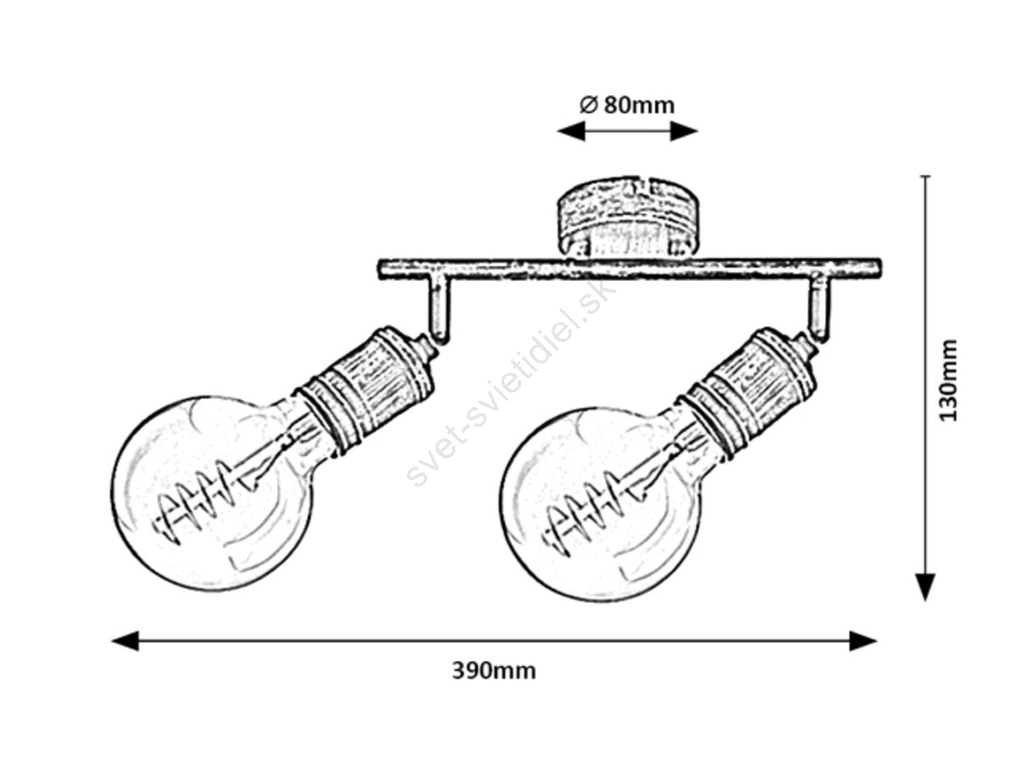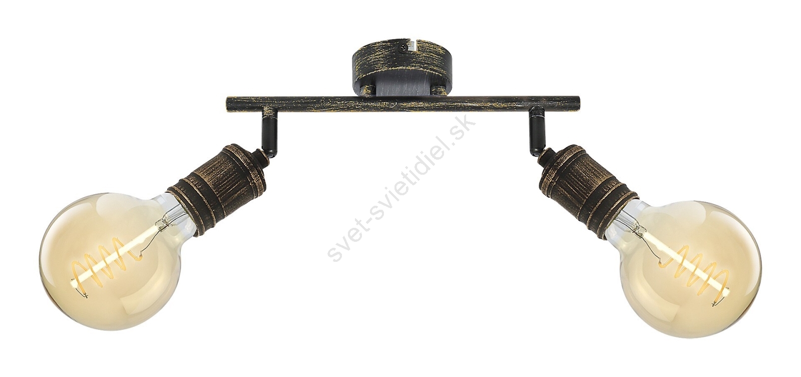 Bodové svietidlo Fidel s 2 žiarovkami v industriálnom štýle môže byť skvelou voľbou do rôznych miestností vášho bytu: môžete ho namontovať do obývacej izby, spálne, jedálne alebo aj do kuchyne. Starožitné zlaté kovové svietidlo je možné upevniť na stenu pomocou okrúhleho ozdobného podstavca. Obe hlavy svietidiel sú umiestnené na nosnej tyči, ktorá je pripevnená k dekoratívnej základni. Žiarovky sú voľne stojace. Svietidlo Fidel je určené pre dve žiarovky, každá s výkonom do 25W. Typ pätice je E27. V závislosti od vášho vkusu a miesta inštalácie si môžete pre toto svietidlo zvoliť teplé alebo prirodzené biele svetlo. Vďaka flexibilným hlavám svietidla môžete svetlo tohto nástenného svietidla nasmerovať podľa svojich potrieb. Rozmery bodového svietidla Fidel s 2 žiarovkami sú nasledovné: šírka 390 mm, výška 130 mm, vzdialenosť od steny 110 mm. Tento model je dodávaný bez svetelných zdrojov.