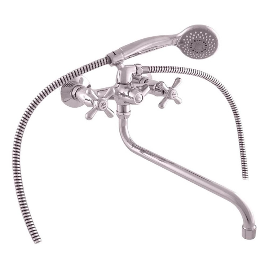 • Vaňová súprava s nástennou vaňovou batériou s keramickým prepínačom, okrúhlym ramienkom, sprchou a držiakom na odkladanie sprchy.