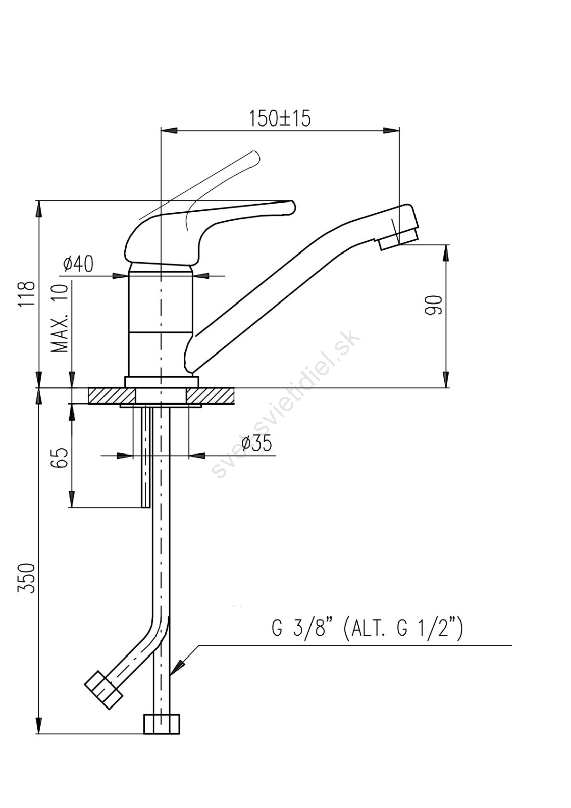 • Vodovodná stojanková umývadlová batéria bez výpuste.