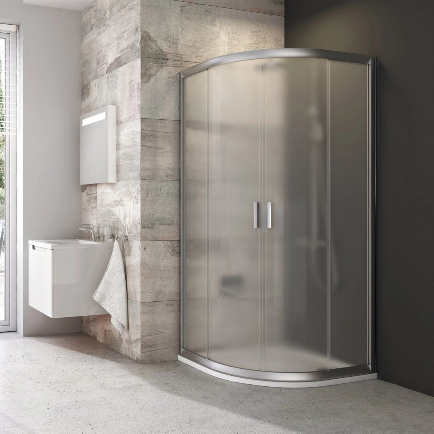 • Kombinácia matného rámu a lesklých chrómových madiel dodáva sprchovaciemu kútu elegantný kontrast a nadčasový vzhľad.