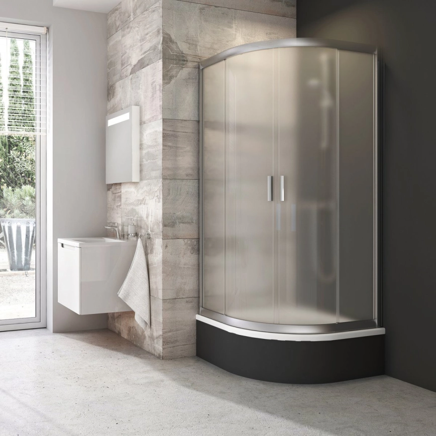 • Štvordielny štvrťkruhový sprchovací kút Blix v elegantnom prevedení s výplňou z nepriehľadného plastu s dekorom Grape je spoľahlivým riešením pre každodenné sprchovanie.