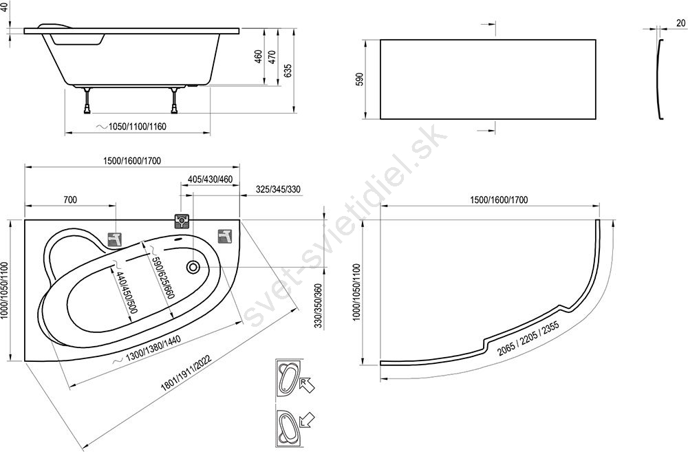 Asymetrické vane, Kúpeľňa, Ravak, Rohové vane, Vane, Značky