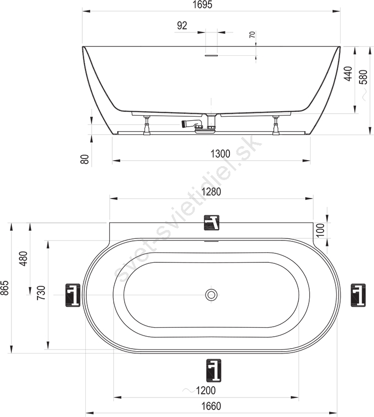 • Súčasťou balenia je vaňový odtokový komplet (t. j. prepad, pileta, sifón, protizápachová uzávera) a podporné nožičky.
