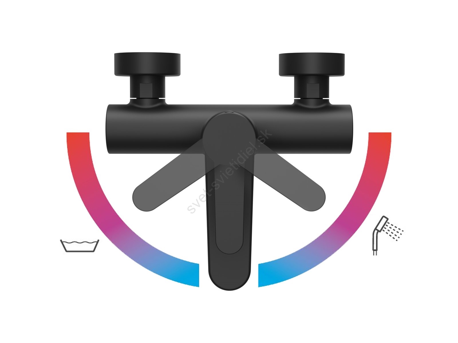 • Pohybom páky doprava (sprcha) alebo doľava (vaňa) sa reguluje len teplota vody, prietok zostáva stabilný.