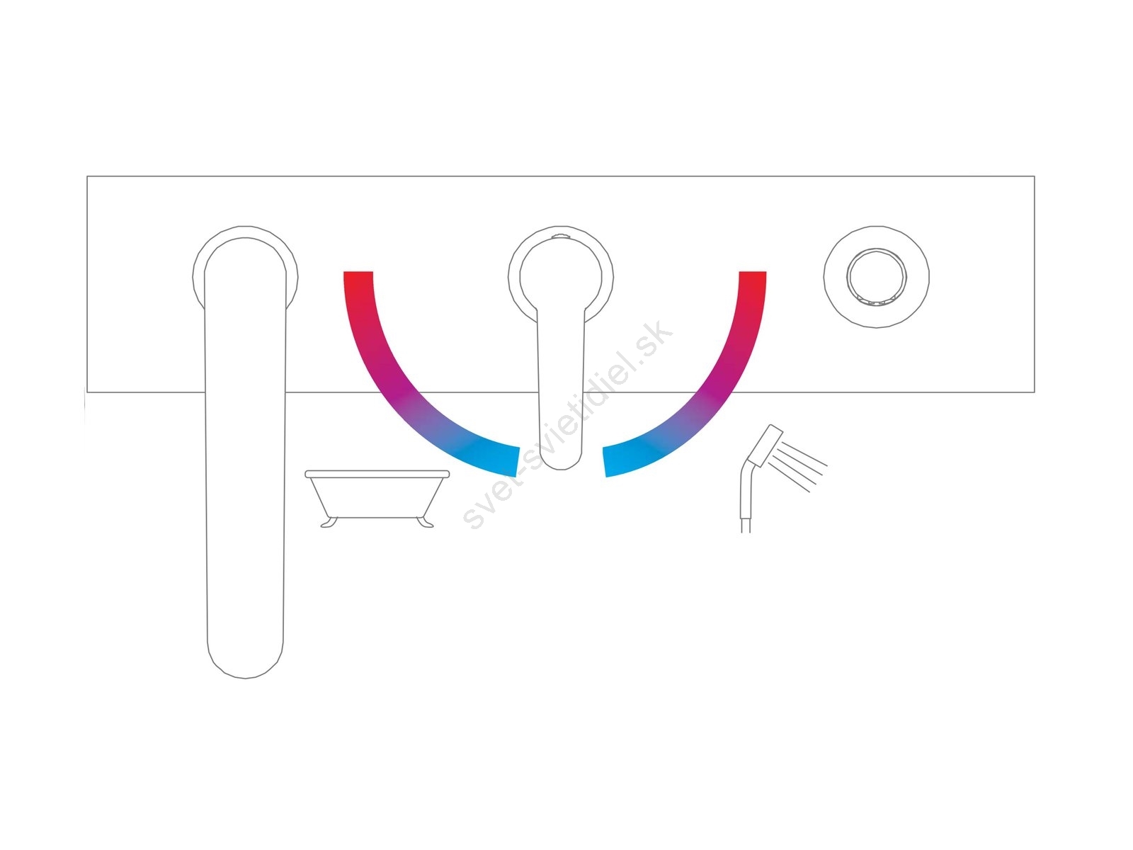 • Pohybom páky doprava (sprcha), alebo doľava (vaňa) sa reguluje iba teplota vody, nie prietok, ktorý zostáva konštantný.