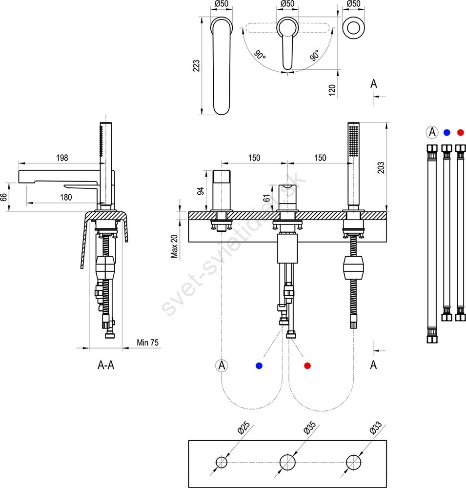• Táto 3-otvorová vaňová batéria je elegantným doplnkom každej kúpeľne.