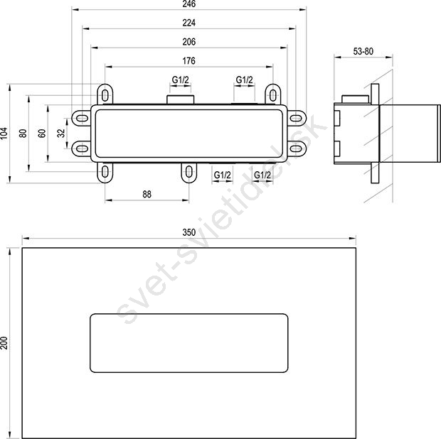 • R-box obsahuje materiál na pripevnenie k stene, nezahŕňa prípojky na rozvody vody ani iný vodoinštalačný materiál.