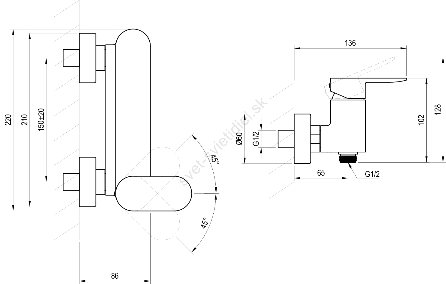 • Rozstup batérie je 150 mm, čo zodpovedá štandardným rozvodom.