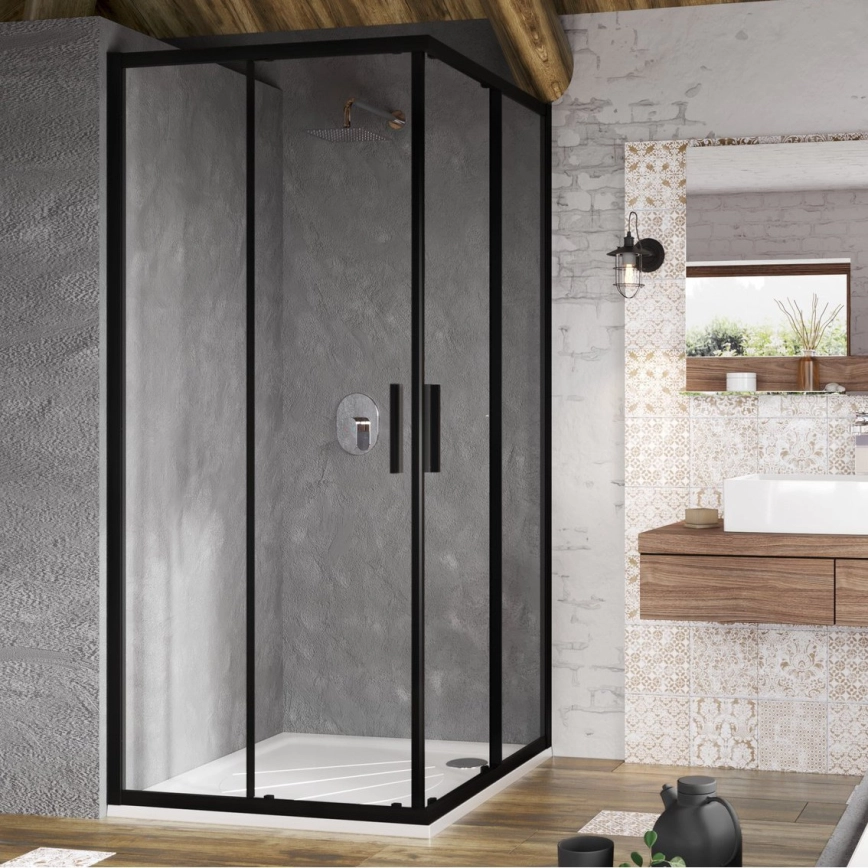 • Štvordielny rohový sprchový kút Blix Slim v čiernom prevedení predstavuje elegantné a praktické riešenie pre moderné kúpeľne.