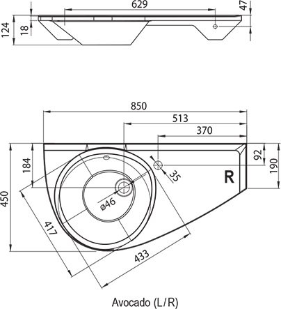 • Závesné umývadlo Avocado v ľavom prevedení je navrhnuté pre úsporu miesta a moderný vzhľad aj v menších kúpeľniach.