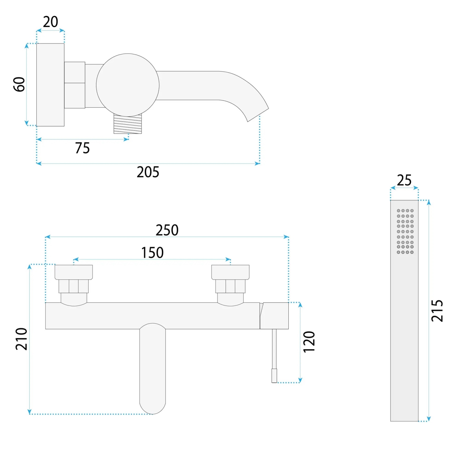 • Sada obsahuje: vaňovú batériu, ručnú sprchu, sprchovú hadicu (190 mm), nástenný držiak ručnej sprchy.