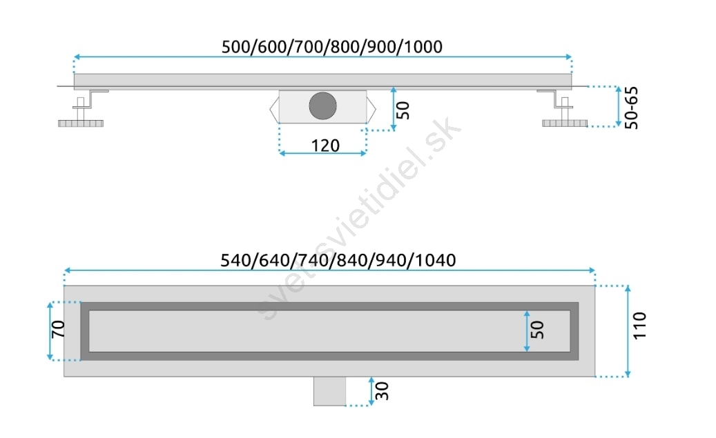 • Liniový odtok dĺžky 60 cm v dekore nerezovej farby.