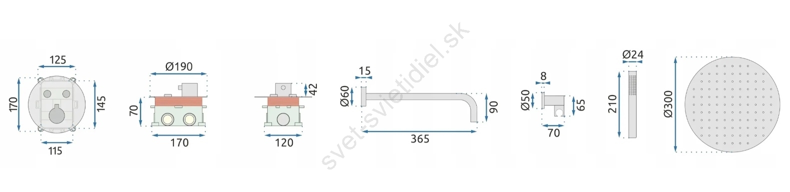• Balenie obsahuje: podomietkový box, kompletná batéria, rameno, ručná a hlavová sprcha, držiak ručnej sprchy, 150 cm hadica.