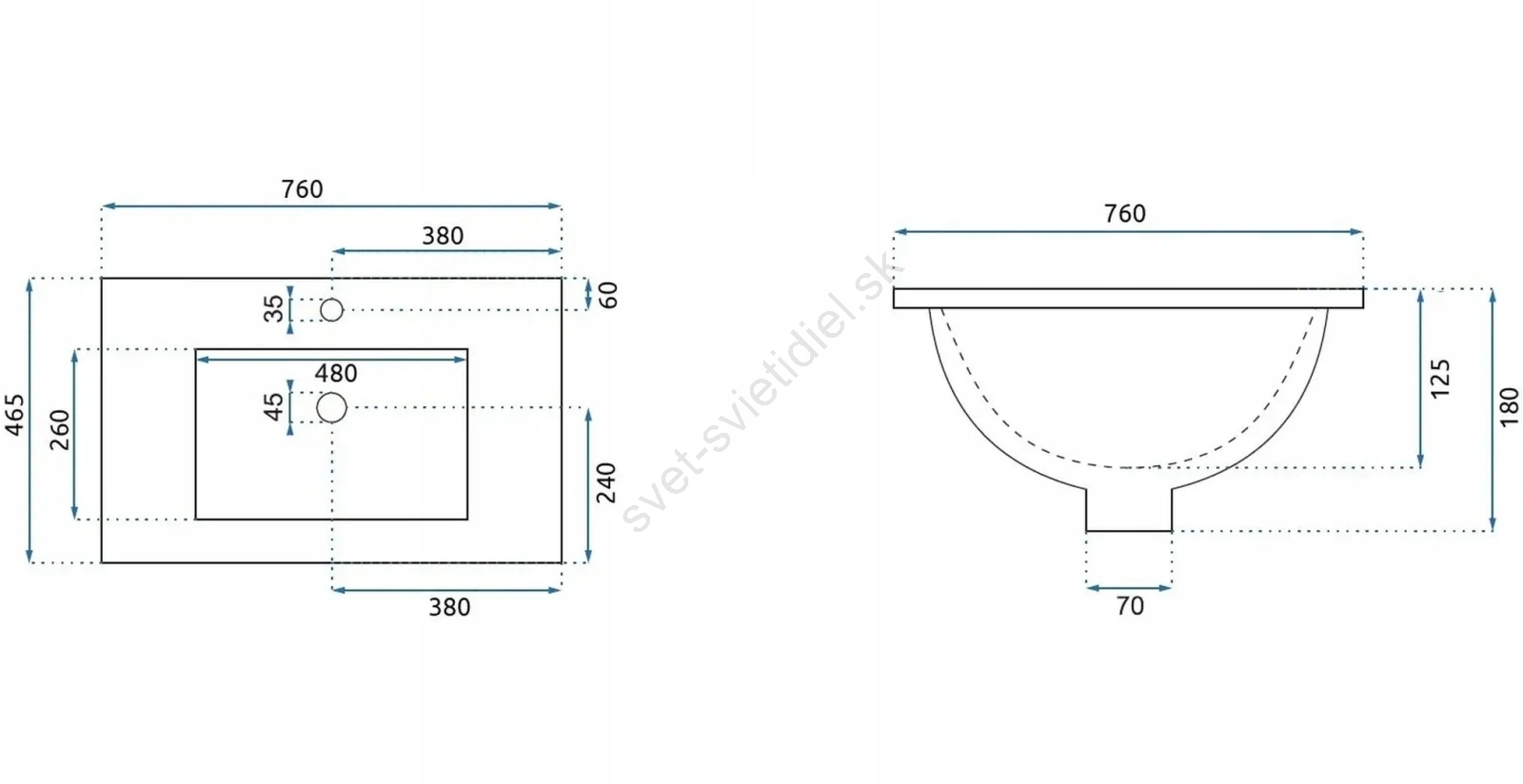 • Umývadlo je vyrobené z vysoko kvalitnej sanitárnej keramiky.