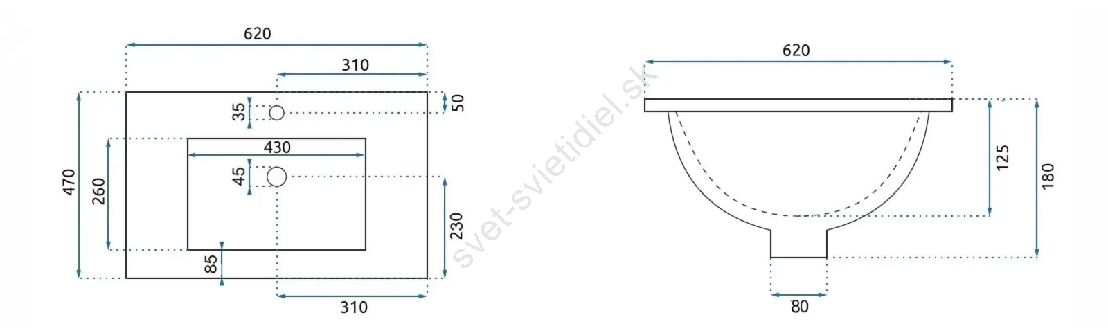 • Umývadlo je vyrobené z vysoko kvalitnej sanitárnej keramiky.
