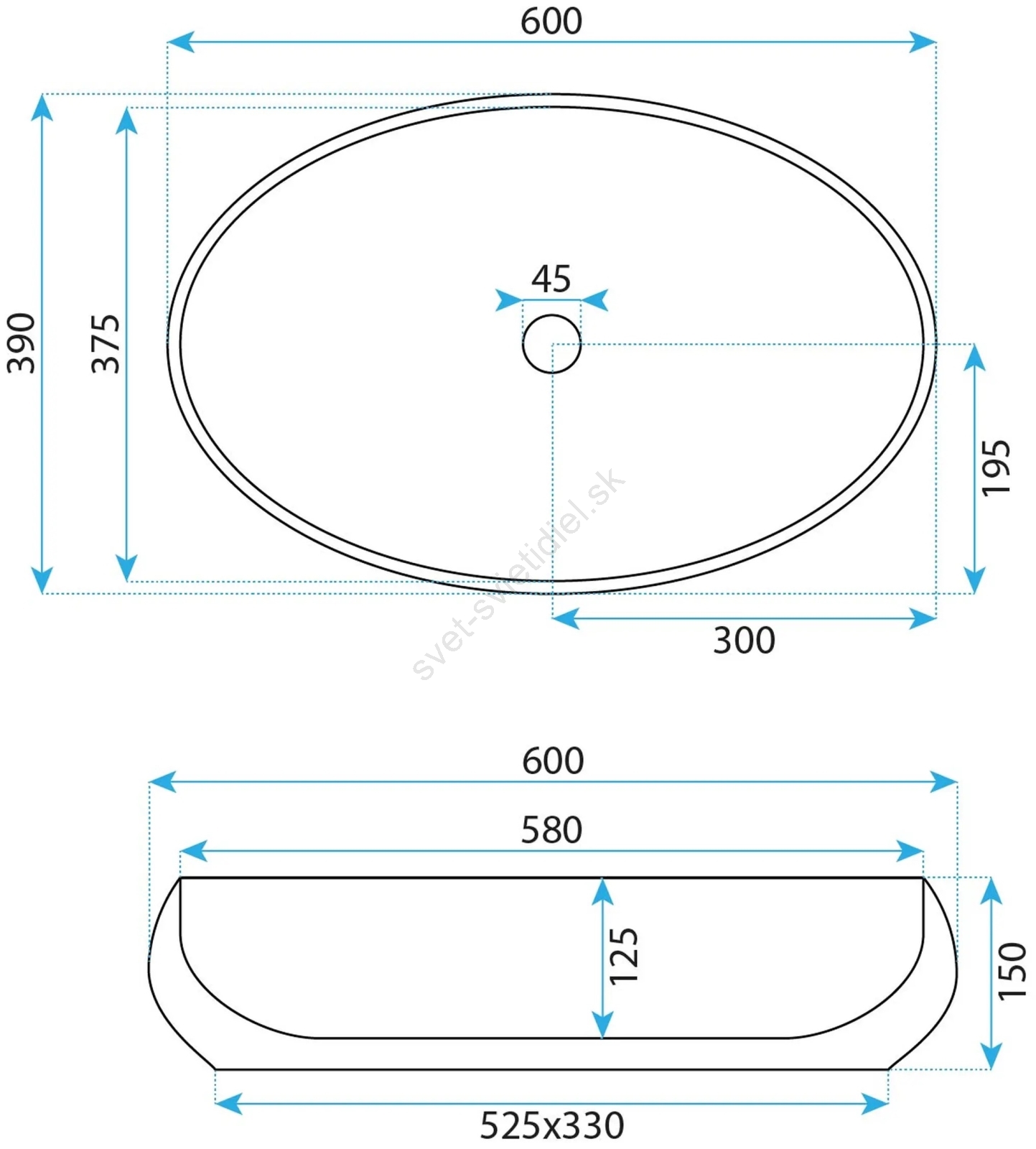 • Moderné a elegantné umývadlo bez prepadového otvoru.