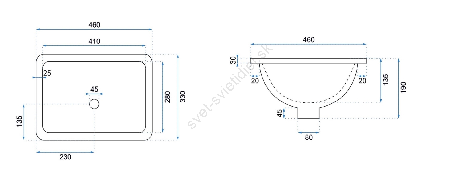 • Umývadlo je vyrobené z vysoko kvalitnej sanitárnej keramiky.
