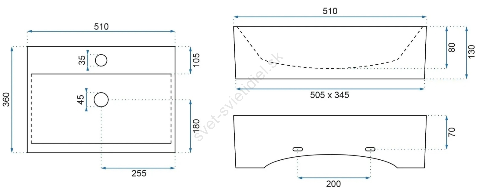 REA-U8701 - Umývadlo na dosku BONITA 36x51 cm keramika/lesklá biela