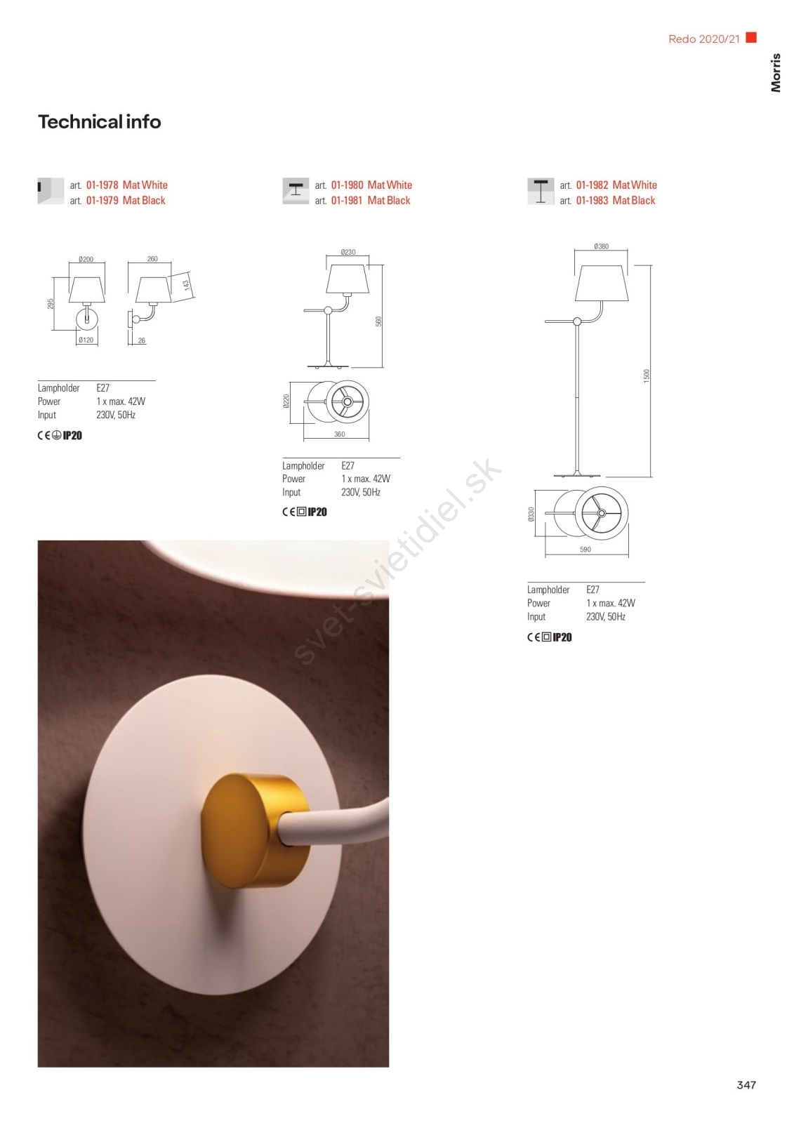 • Redo 01-1980 - Stolná lampa MORRIS 1xE27/42W/230V biela
