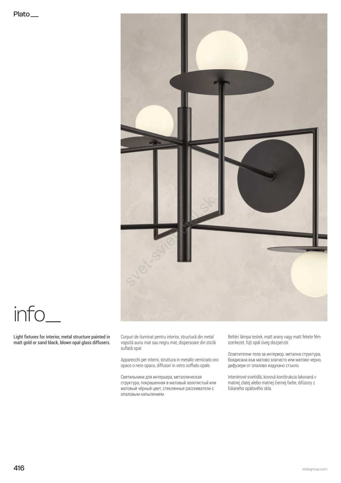 Redo 01-2735 - Luster na tyči PLATO 8xG9/10W/230V zlatý charakterizuje pekný dizajn a funkčné prevedenie.  Do svietidla je určená žiarovka s päticou G9. Tu si môžete kúpiť ďalšie žiarovky za výhodnú cenu. Získate tak zaujímavý doplnok do svojho domova.