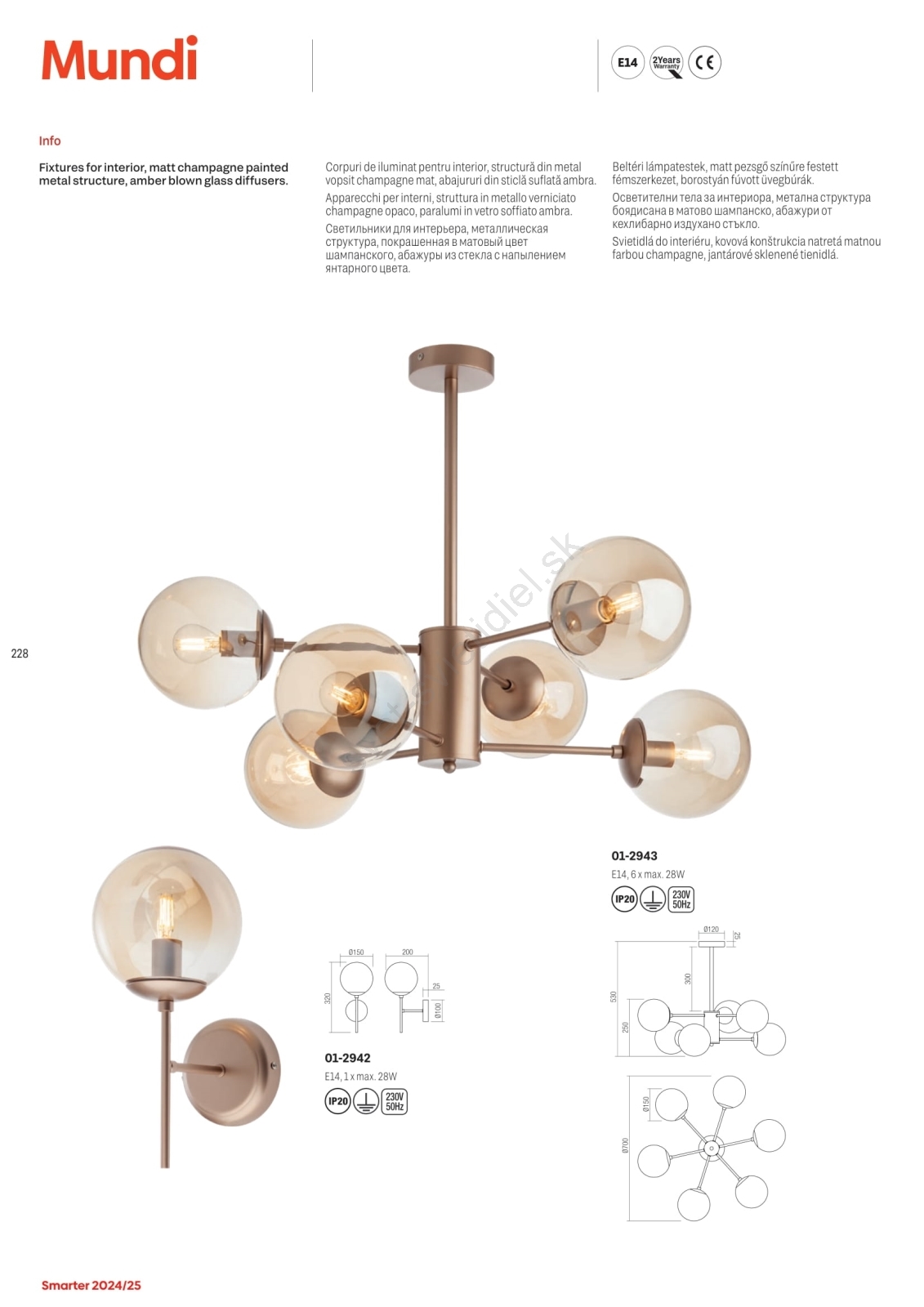 Redo 01-2942 - Nástenné svietidlo MUNDI 1xE14/28W/230V meď/dymové charakterizuje pekný dizajn a funkčné prevedenie.  Do svietidla je určená žiarovka s päticou E14. Tu si môžete kúpiť ďalšie žiarovky za výhodnú cenu. Získate tak zaujímavý doplnok do svojho domova.