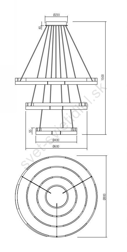 • Redo 01-3182 - LED Stmievateľný luster na lanku CASTLE LED/80W/230V čierna