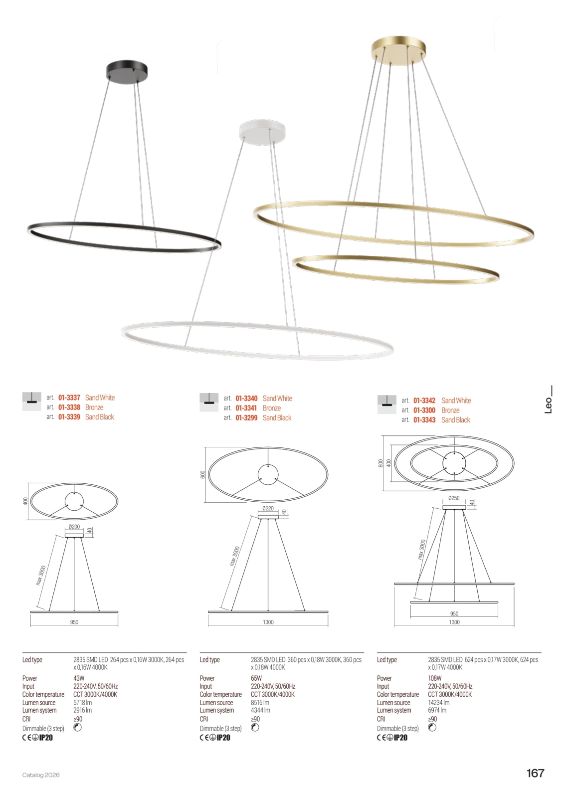 • Redo 01-3342 - LED stmievateľný luster na lanku LEO LED/115W/230V 3000/4000K CRI 90 60x130 cm biela