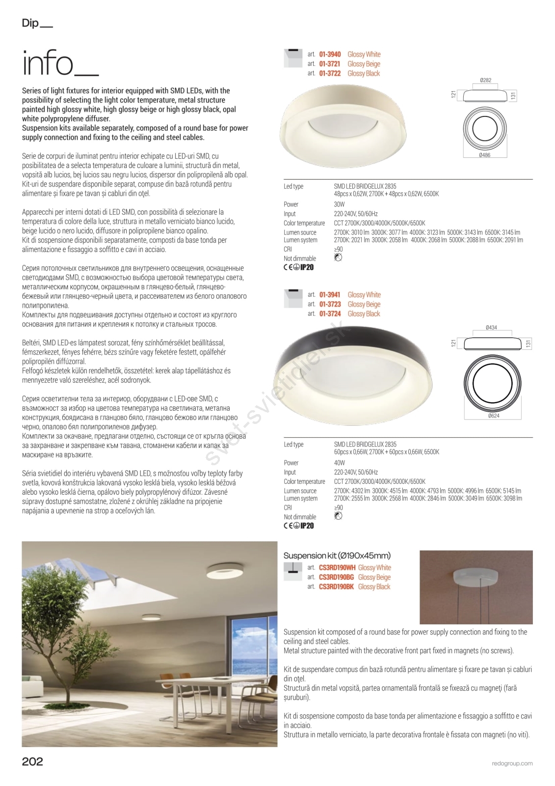 • Redo 01-3941 - LED stropné svietidlo DIP LED/40W/230V 2700/3000/4000/5000/6500K CRI 90, priemer 62,4 cm, biela