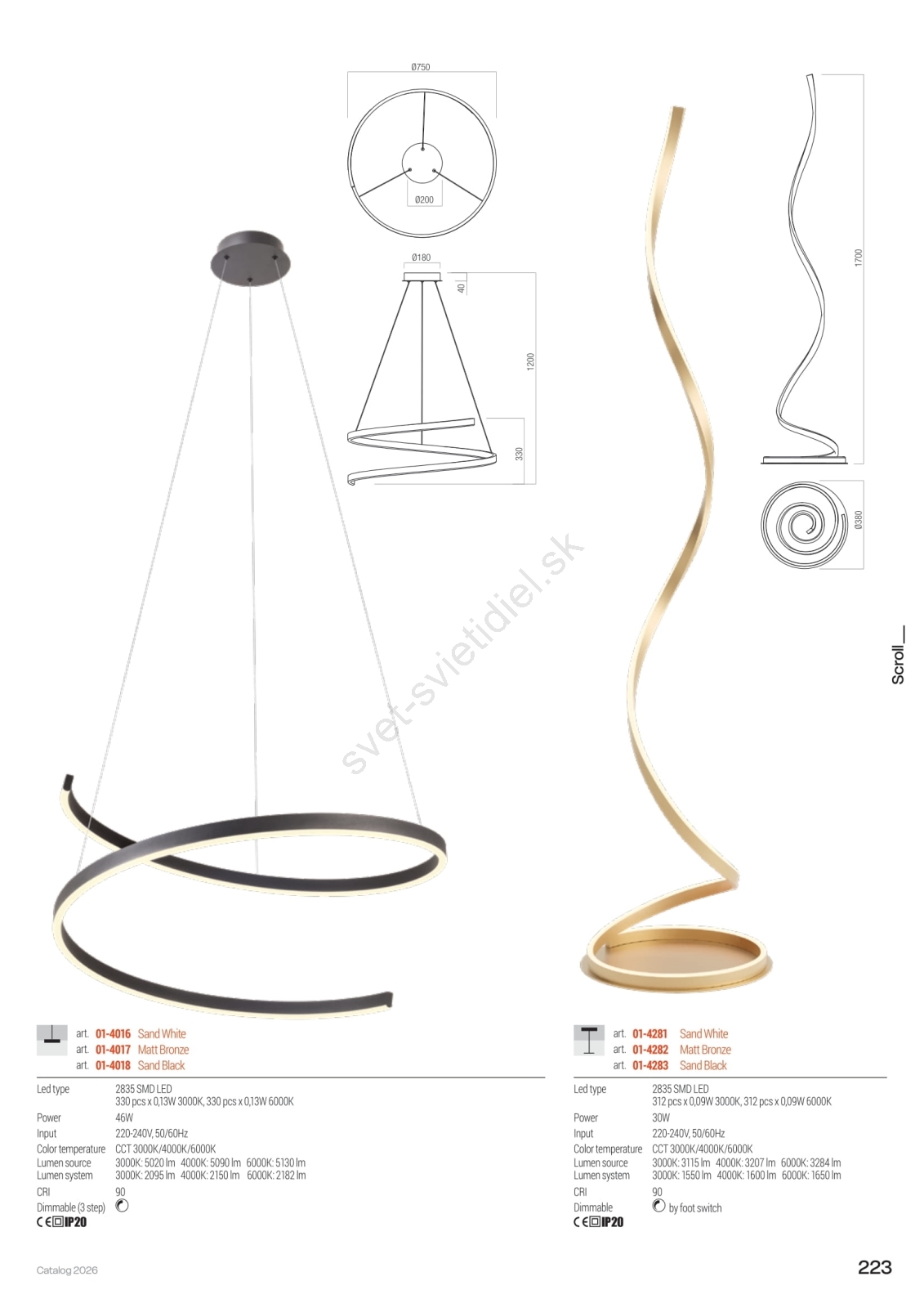 • Redo 01-4281 - LED Stmievateľná stojacia lampa SCROLL LED/30W/230V 3000K/4000K/6000K CRI 90 biela