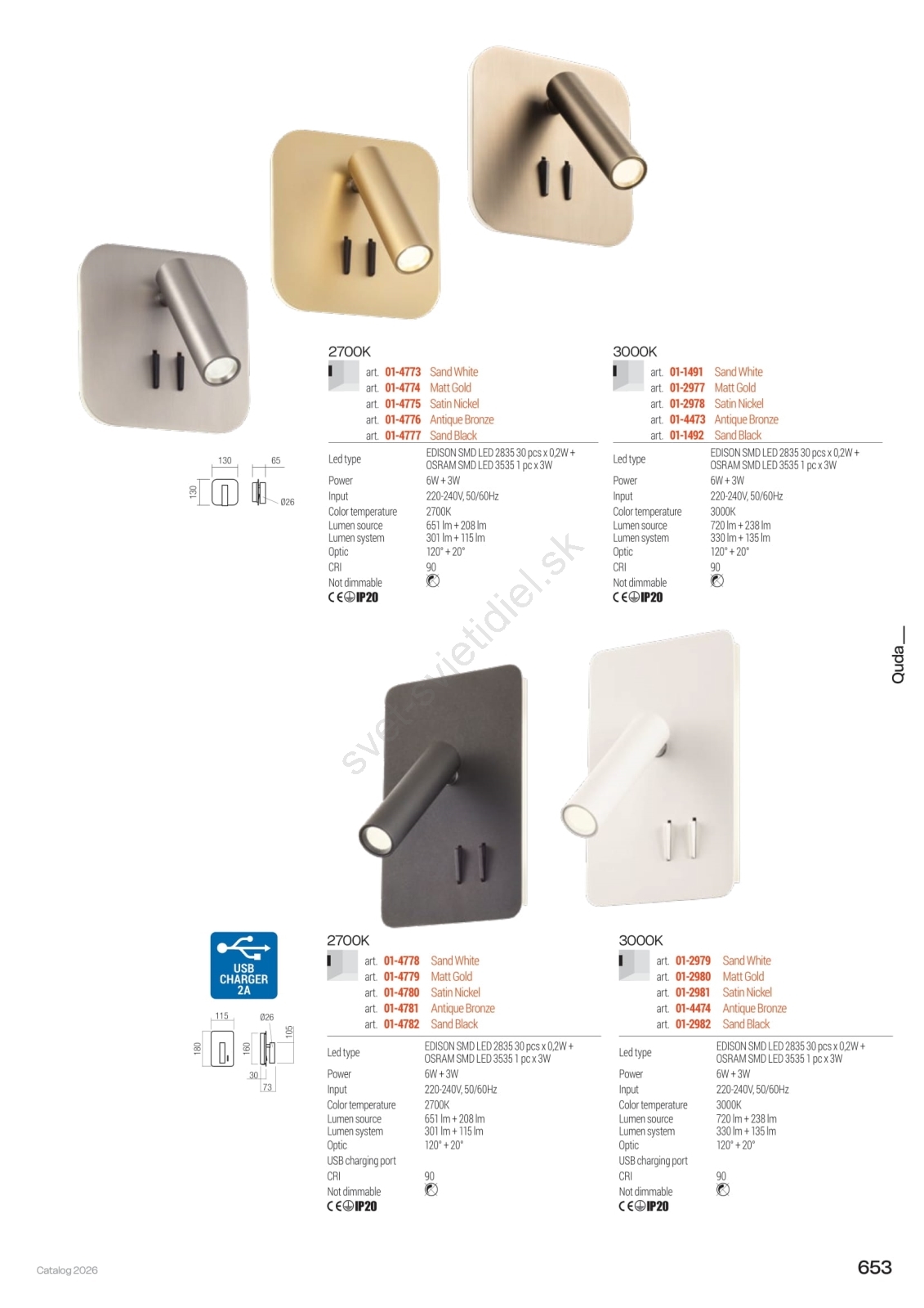 • Redo 01-1491 - LED nástenné svietidlo QUDA LED/6W/230V + LED/3W CRI 90 biela