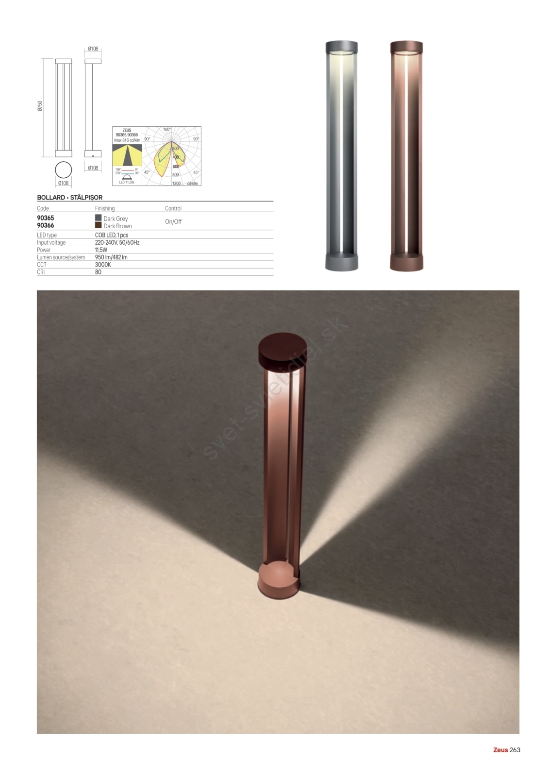 • Redo 90366 - vonkajšie LED svietidlo ZEUS, 11,5 W, 230 V, 3000 K, 75 cm, IP54, hnedé