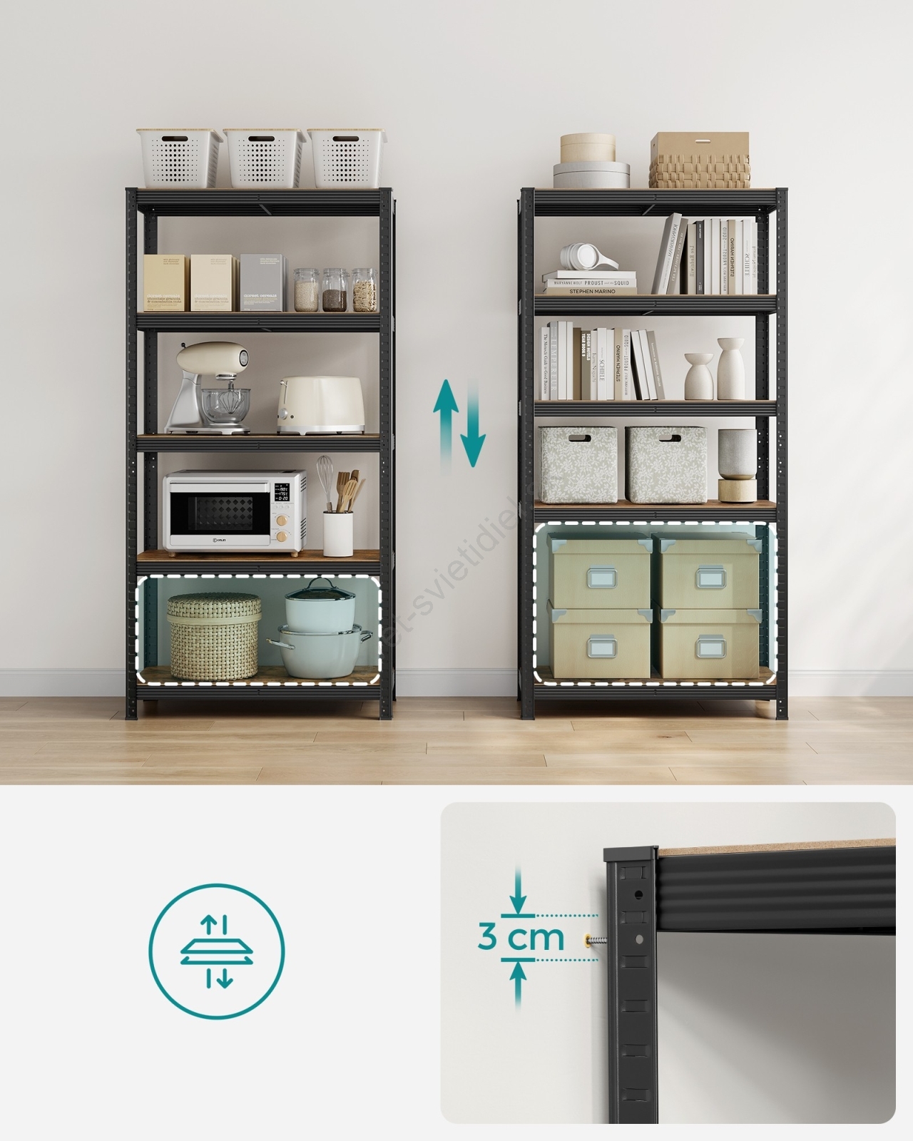 • Každá polica unesie až 175 kg a bezpečne udrží farby, náradie aj fitness vybavenie.