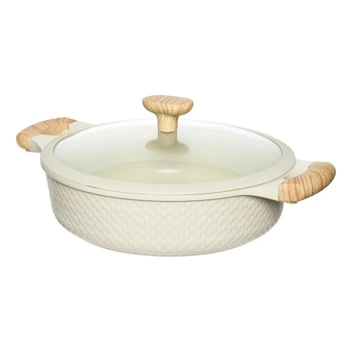• Priemer 28 cm a objem 4,1 l ponúkajú ideálnu kapacitu na prípravu jedál pre celú rodinu, pričom liaty hliník zabezpečuje rýchly prenos tepla a stabilný výkon na všetkých typoch varných dosiek.
