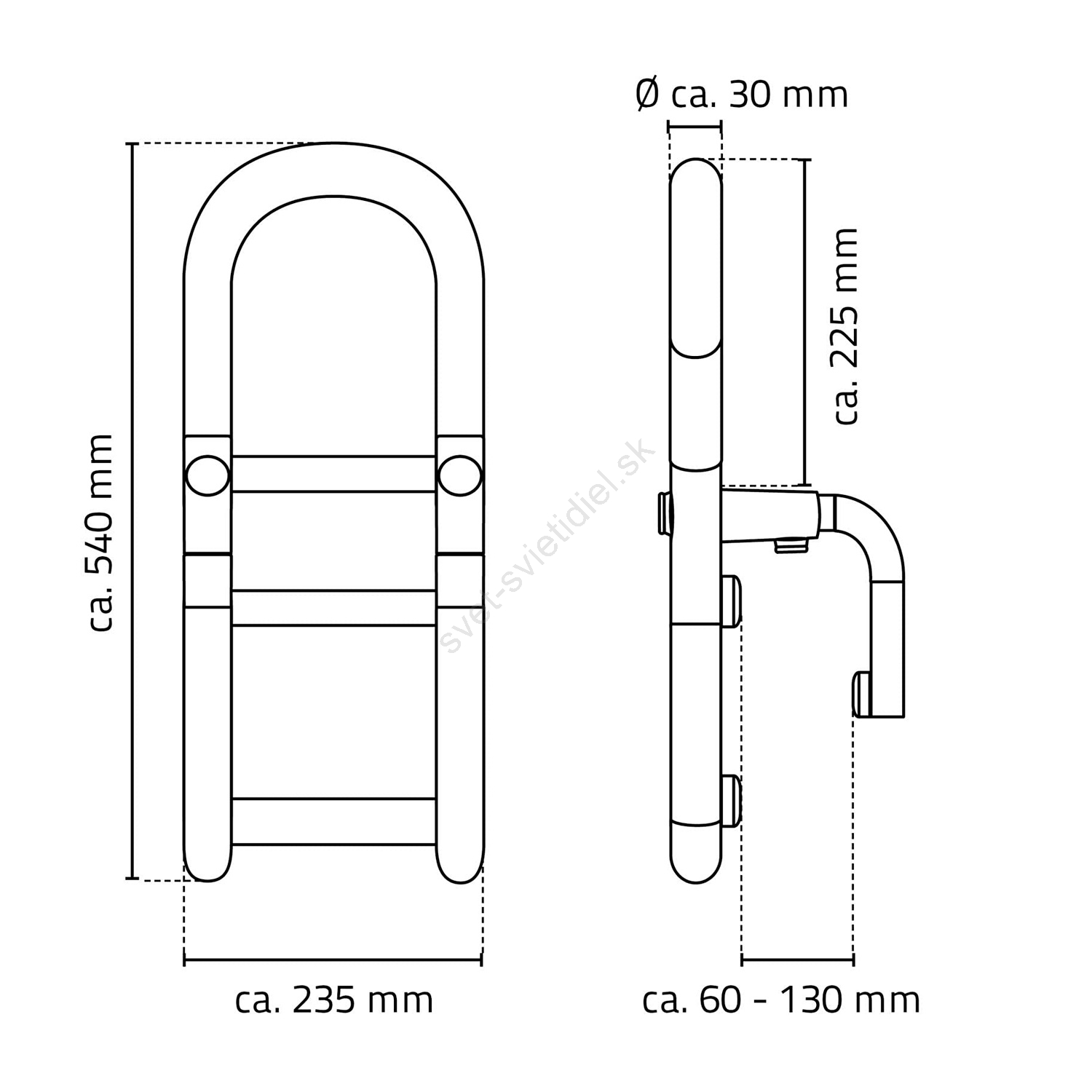 • Jeho montážna rozteč je nastaviteľná od 60 do 130 mm.