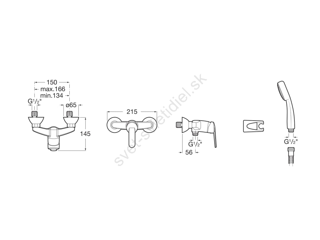 • Balenie obsahuje: sprchovú batériu, ručnú sprchu, flexibilnú hadicu 1,5 m, nástenný držiak.
