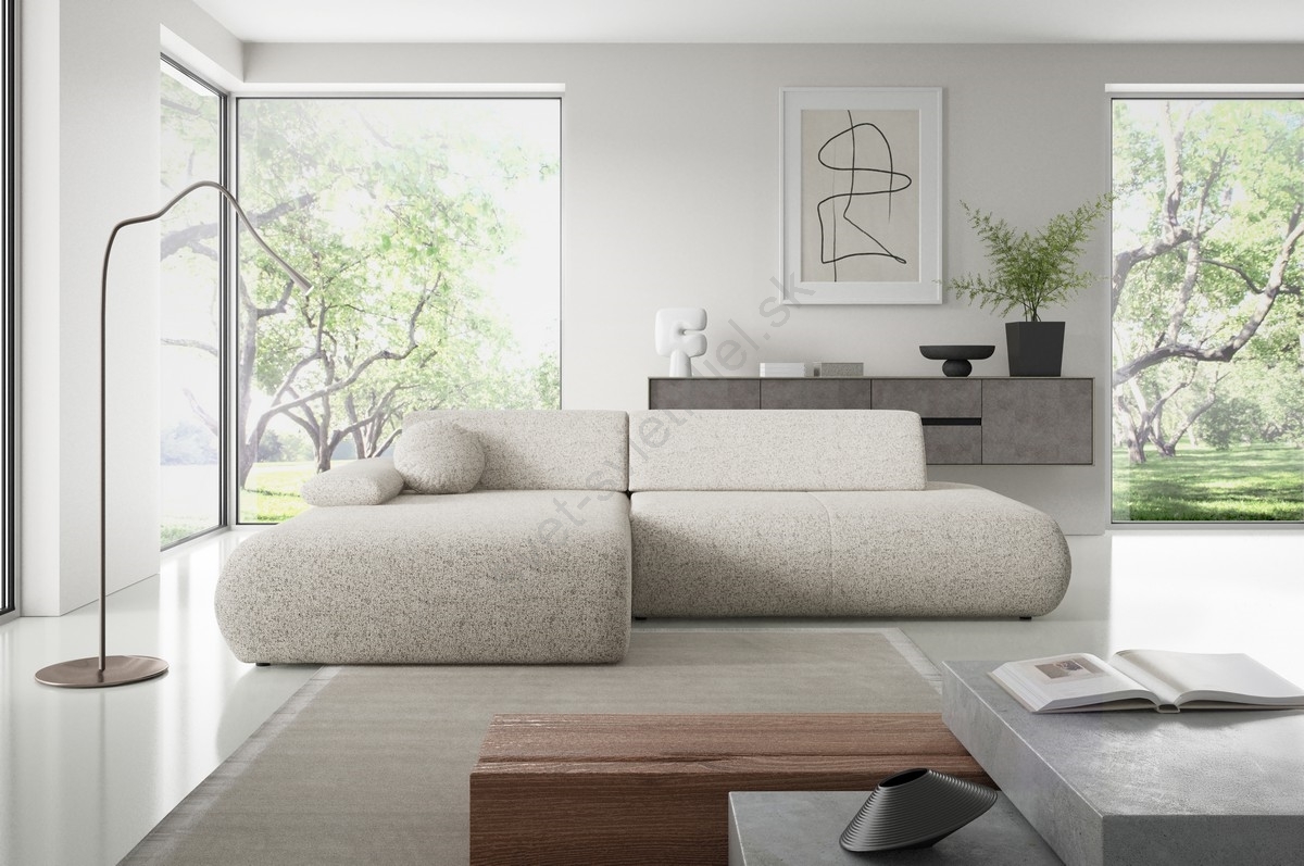 • Rohová rozkladacia sedacia súprava s úložným priestorom do tvaru L PRATO ľavá béžová