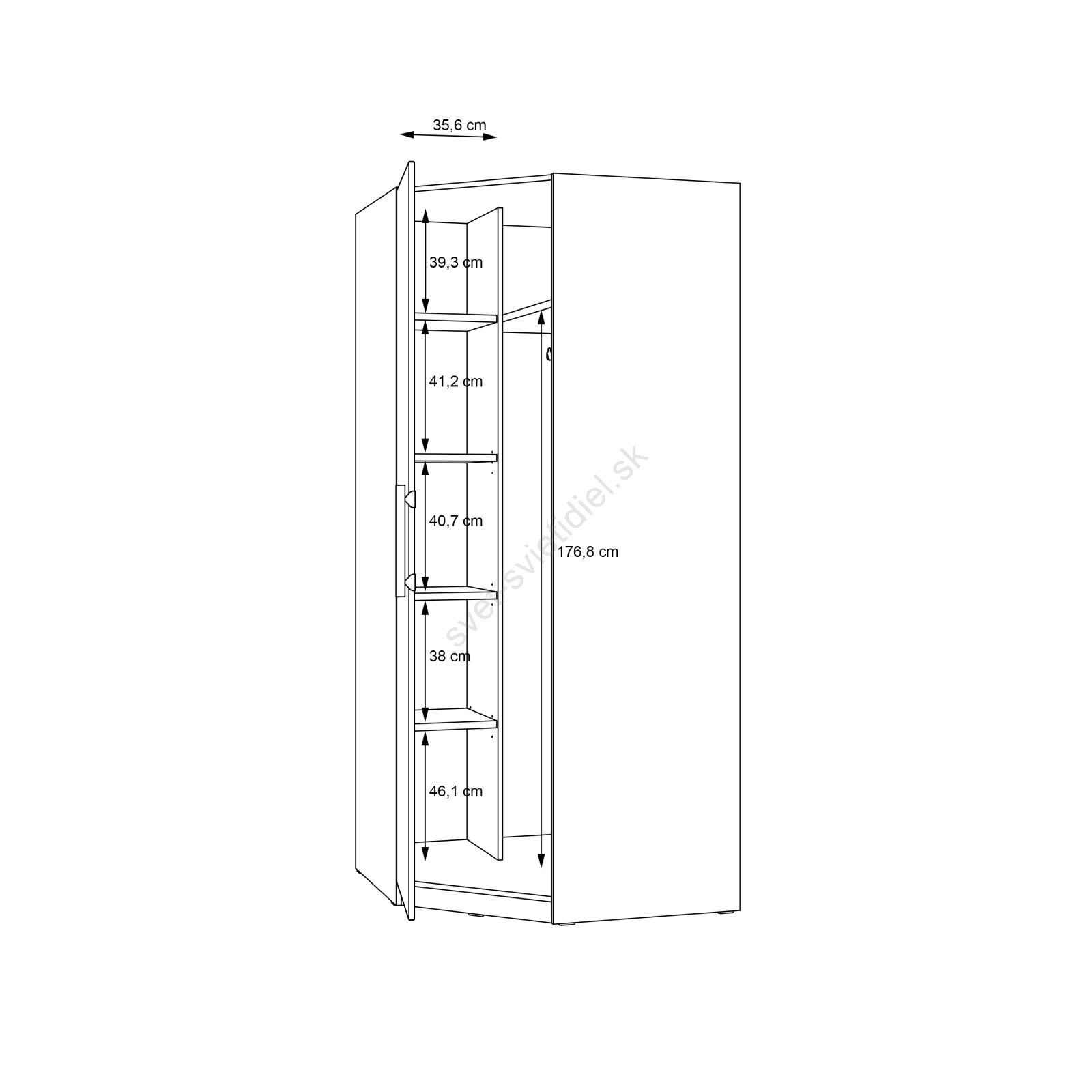 • Skriňa disponuje vešiakovou tyčou, policami a priestranným úložným priestorom na vaše oblečenie, tašky a sezónne veci.