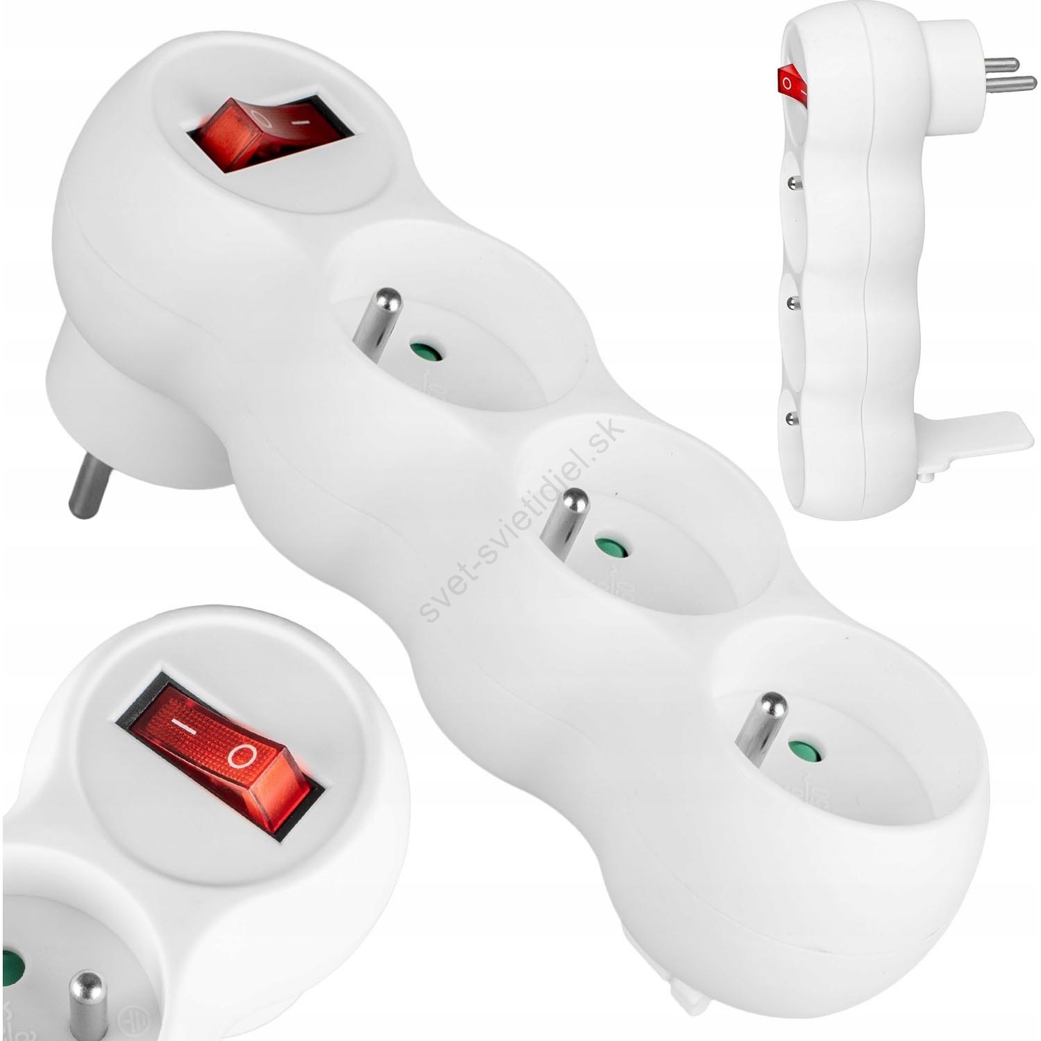 Rozbočovač zásuviek s vypínačom, 3 zásuvky