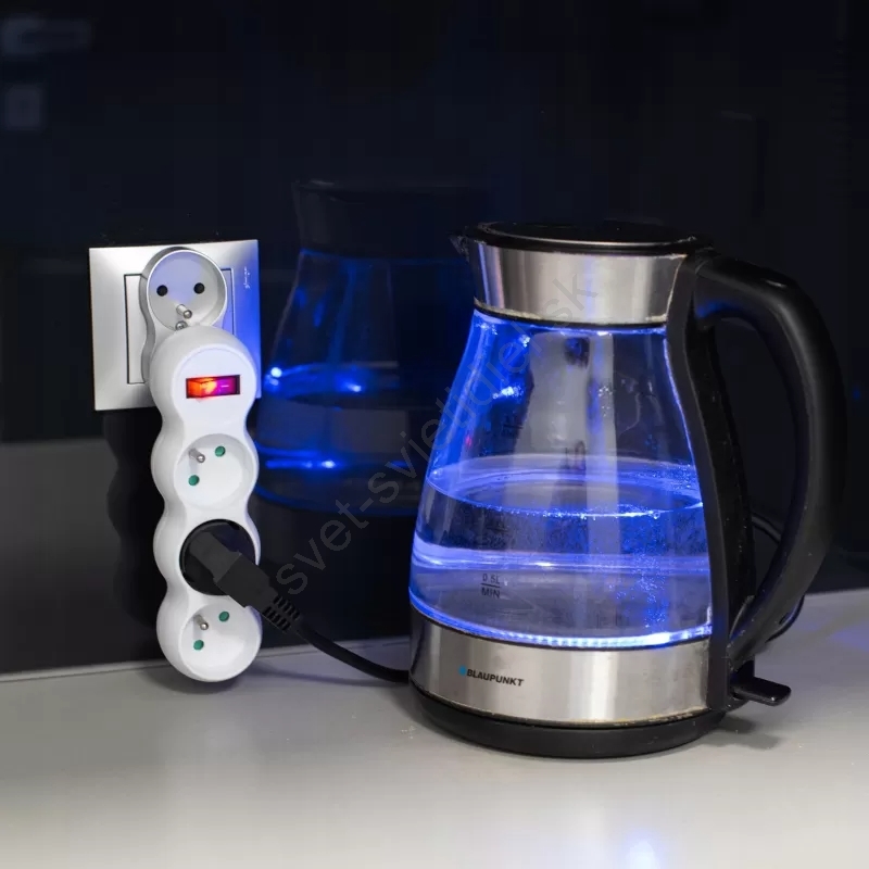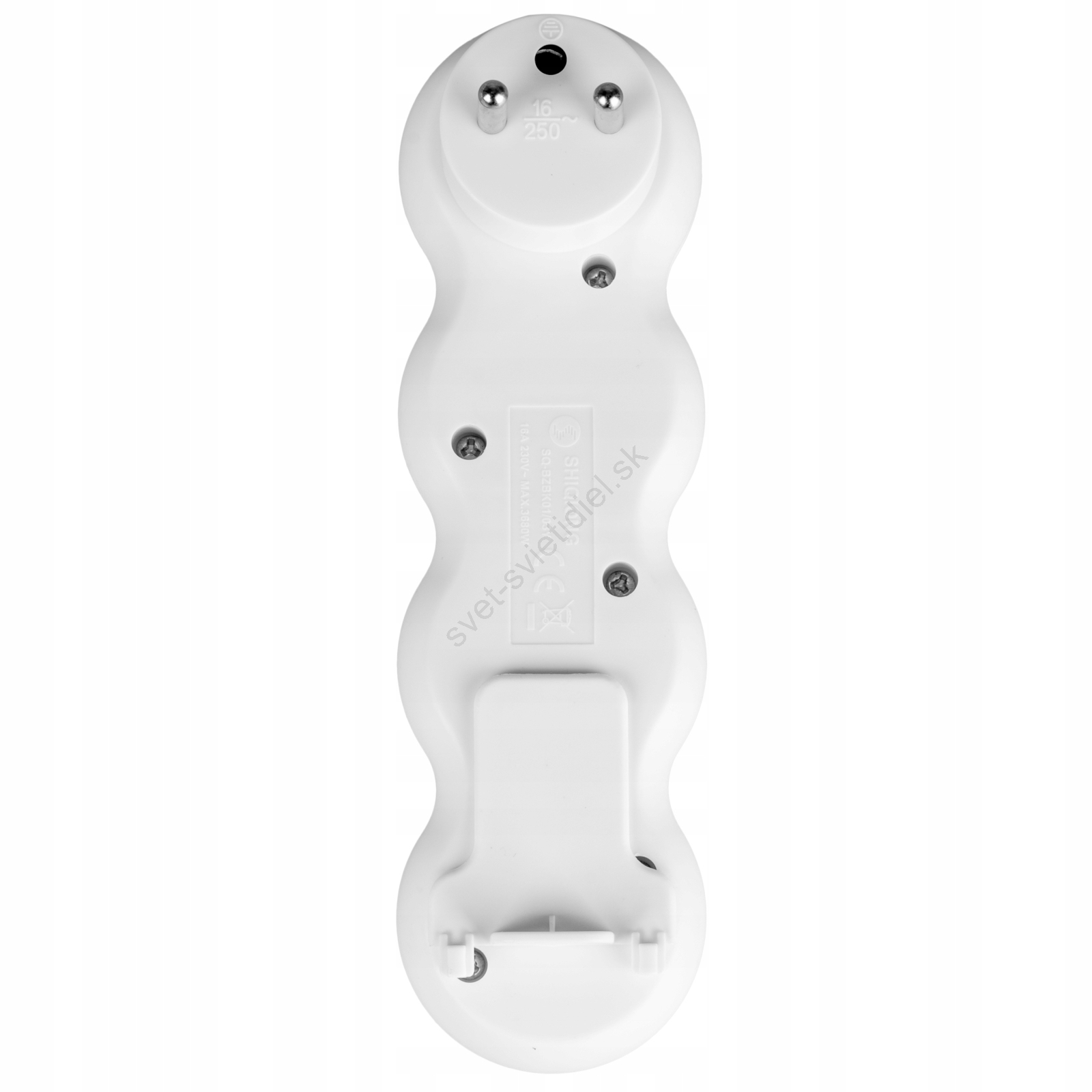 • Sieťová zásuvková lišta s 3 uzemnenými zásuvkami a predĺženým krytom so základňou.