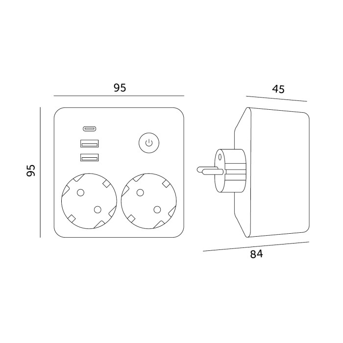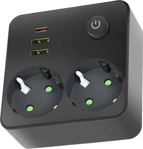 Rozbočovacia zásuvka s vypínačom LINEA 2x230V + 3xUSB A/C SCHUKO čierna