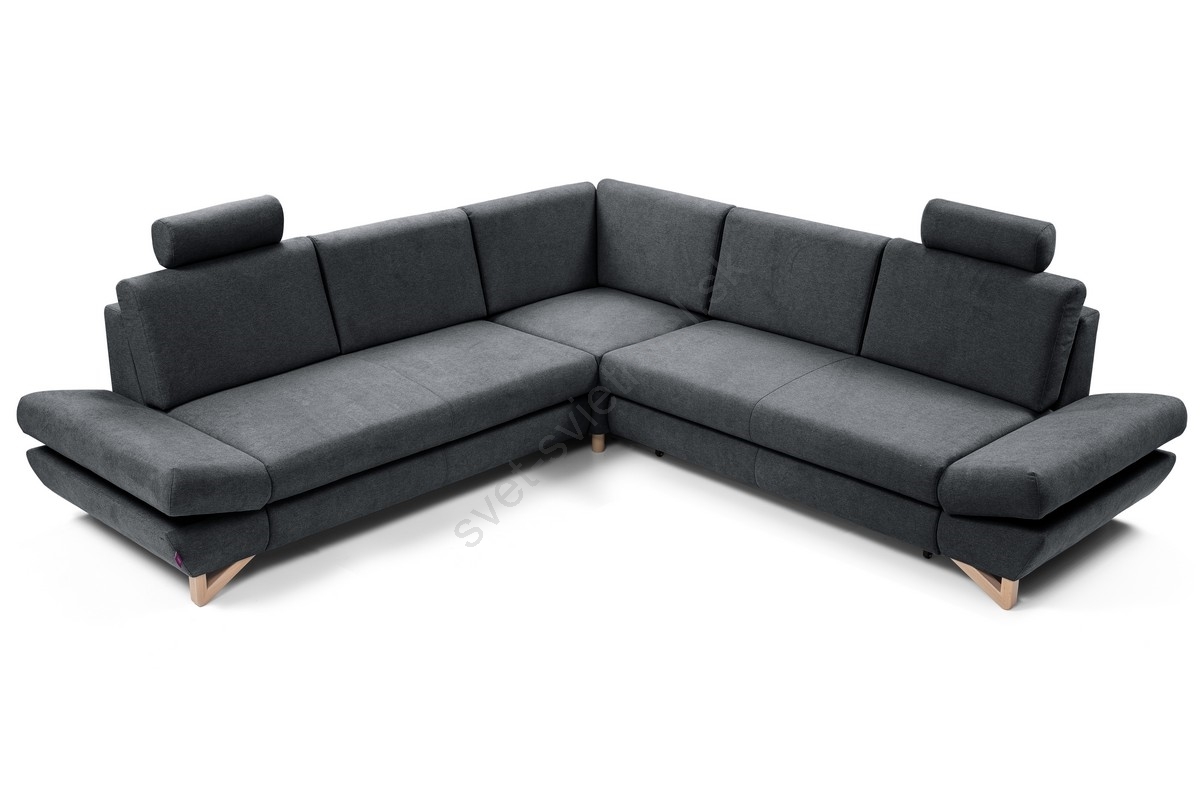 • Rozkladacia rohová čalúnená sedacia súprava v tvare L s úložným priestorom AVESTA antracit