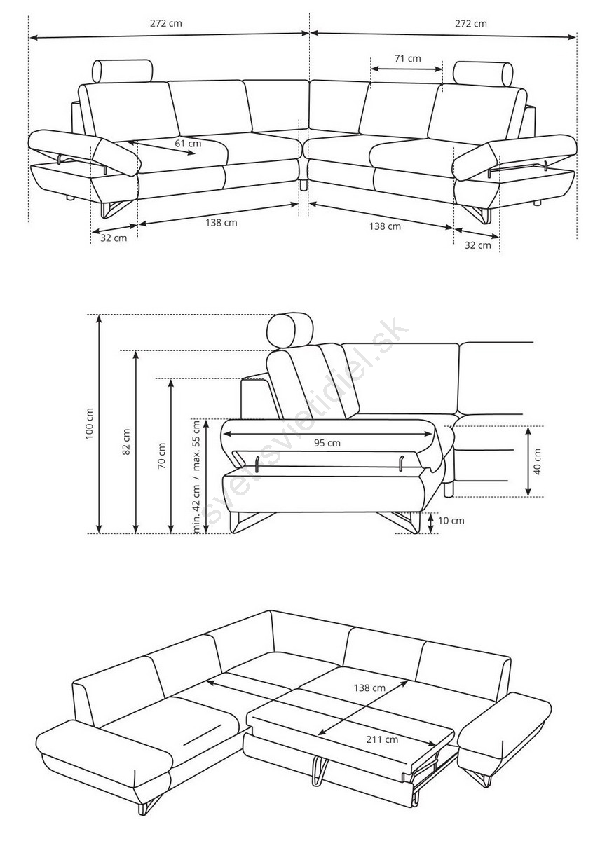 • Vďaka funkcii lôžka (typ delfín) sa dá ľahko premeniť na komfortný priestor na spanie.