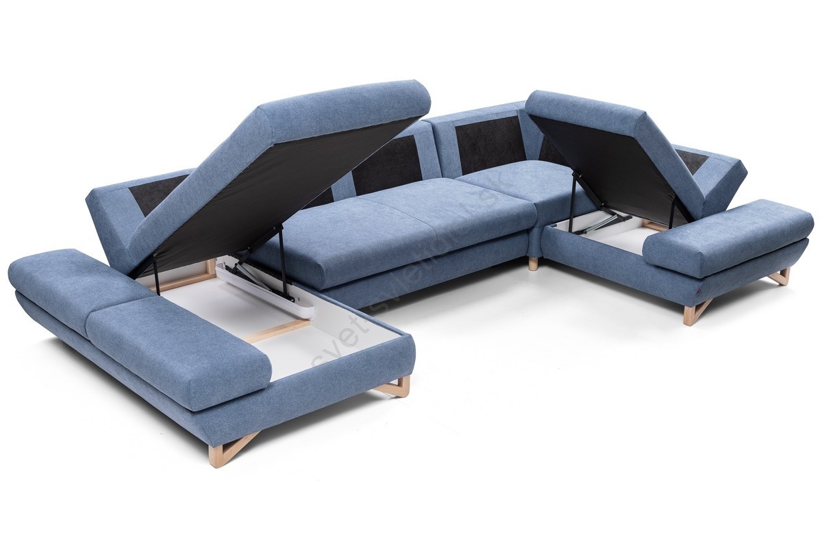 • Rozkladacia rohová čalúnená sedacia súprava do U AVESTA, modrá, s úložným priestorom