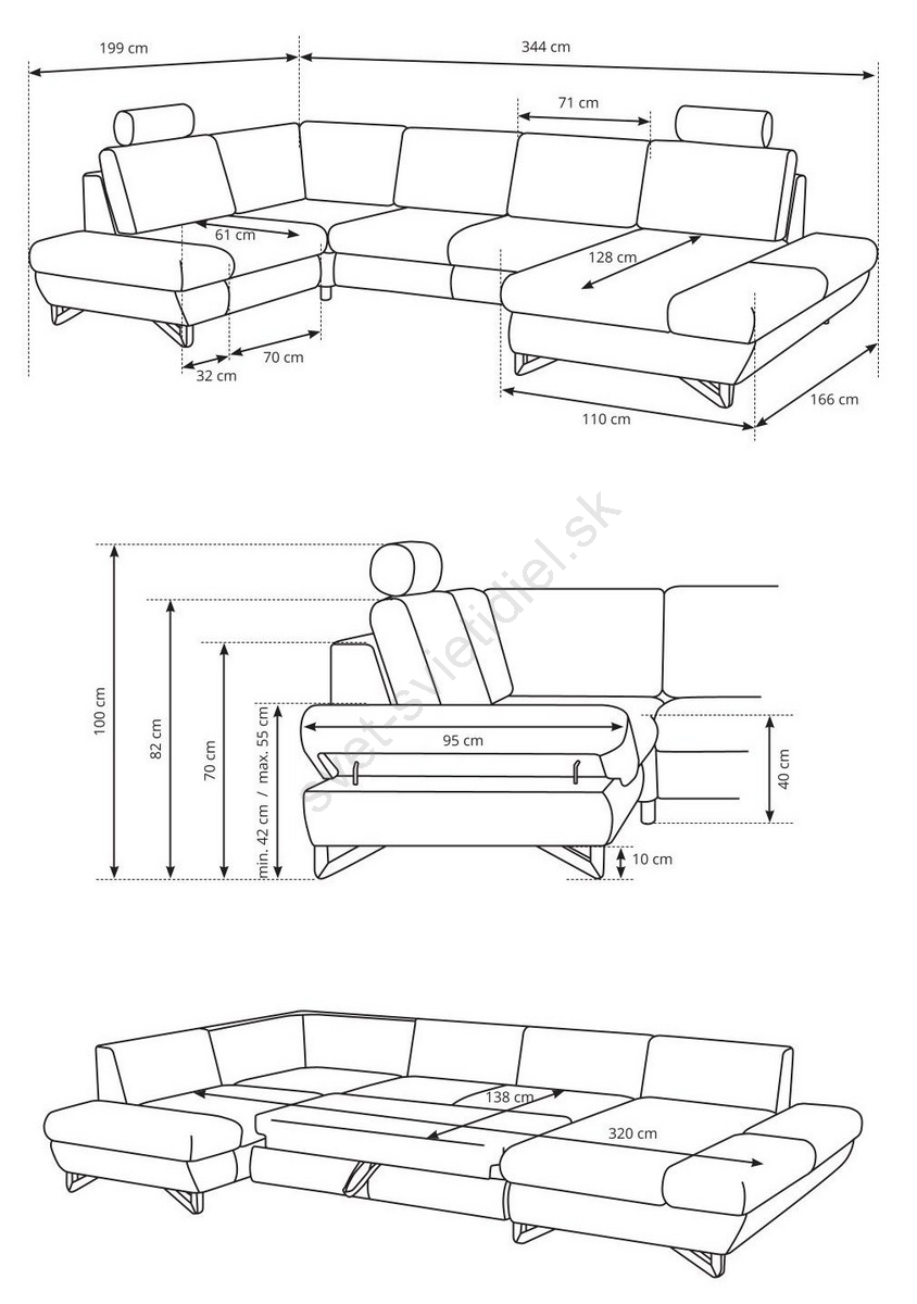 • Vďaka funkcii lôžka (delfínový mechanizmus) sa dá ľahko premeniť na komfortný priestor na spanie.