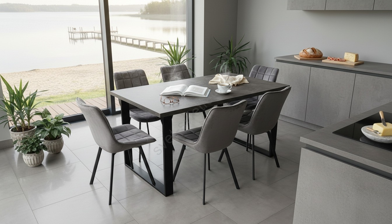 • Šedá farba dodáva jedálenskému stolu moderný a zároveň útulný vzhľad.