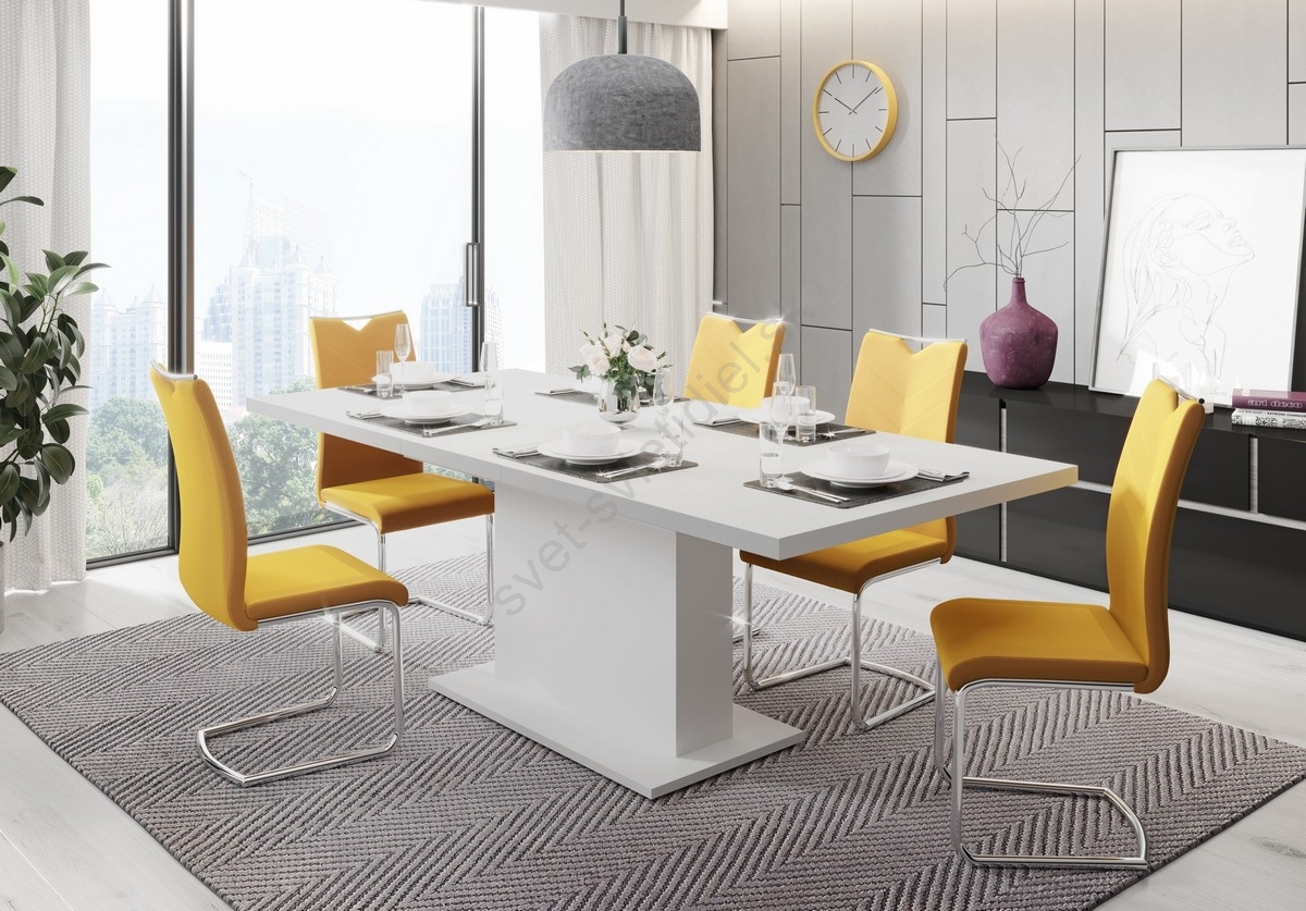 • Čisté línie a konštrukcia z neho robia praktický a štýlový ústredný prvok jedálnej časti a poskytujú dostatok miesta na sedenie a stolovanie.