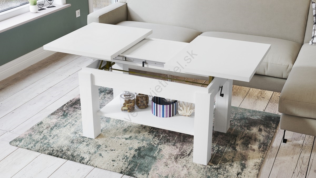 • Rozkladací konferenčný/jedálenský stôl s policou ADONIS biely