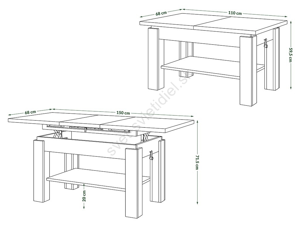 • Dosku je možné zdvihnúť až do výšky 71,5 cm.