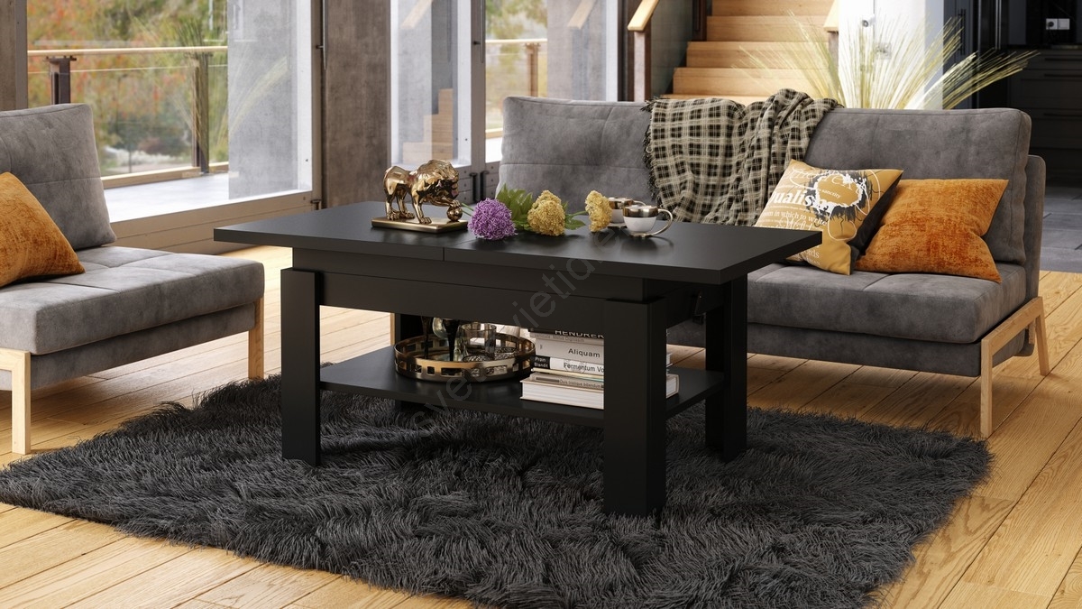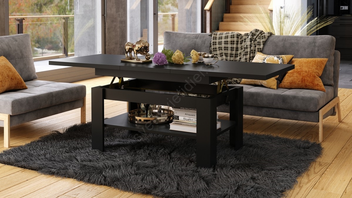 • Rozkladací konferenčný/jedálenský stôl s zdvíhacou doskou ROY čierna/antracit